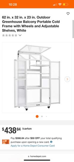 62 in. x 32 in. x 23 in. Outdoor Greenhouse Balcony Portable Cold Frame with Wheels and Adjustable Shelves, White$200Riverside, CA