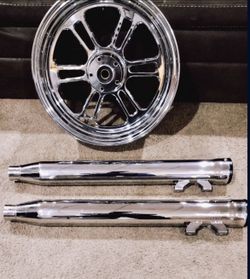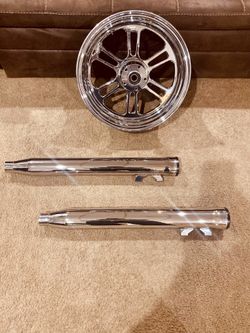 Harley Davidson Chrome Pipes & “18 Rear Rim$200Norwich, CT