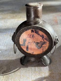 Antique Chinese Tea Caddy with Round Glass Panels Portraits 7.5” Height Pewter$45Pflugerville, TX