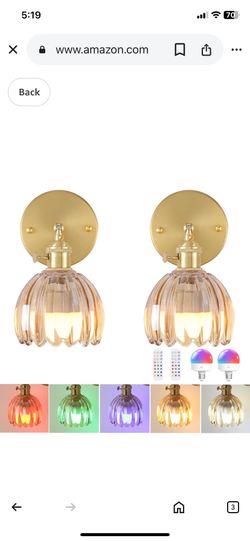 Vintage Battery Operated Wall Sconce with Amber Tulip Glass Lampshade Wireless Rechargeable Battery Powered Wall Light with Remote Control for Bedside$50Brentwood, NC