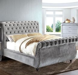 Grey Velvet Tufted Sleigh Bed with Crystal Studs - Queen Only$599Las Vegas, NV