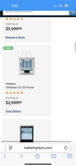 Ultimaker S3 3d Maker$1,500Santa Paula, CA