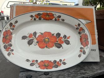 Vintage Sanko Ware Show Pans 18" x 12" Oval Enamel Orange Floral Serving Platter$30San Diego, CA