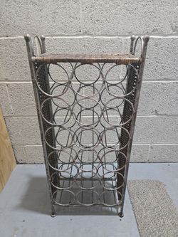 Tall Metal Wine Rack Bottle Holder Stand w/ Woven Top Shelf Rustic$30New Britain, PA