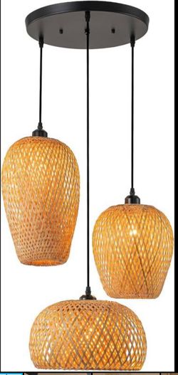 Rattan Pendant Light Bamboo Hanging 3-Lights Boho Pendant Light Fixture Woven Basket Chandelier - New in Box$50Phoenix, AZ
