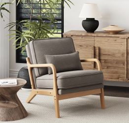 Gray Accent Chair with Solid Wood Frame, Mid-Century Relaxing Armchair Lumbar Pillow - Brand New in Box $60Phoenix, AZ