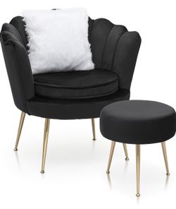 Black Velvet Accent Chair with Ottoman Elegant Mid-Century Modern office Bedroom Vanity Chair - New in Box$75Phoenix, AZ