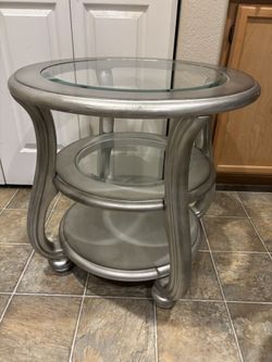 Pair End tables silver wood & glass 3 levels/shelves$75Las Vegas, NV