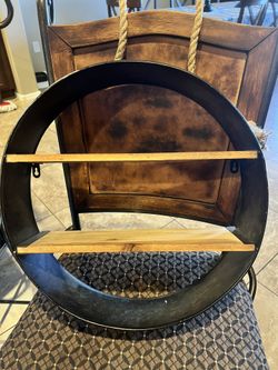 Galvanized Metal Round 2 Wood Shelves Wall Hanging w/ Rope 17.5” x 5”$25Peoria, AZ