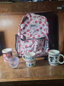 Hello kitty bundle backpack mugs tea cup$50Litchfield Park, AZ