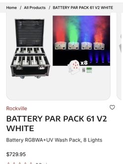 Rockville Battery PAR 61 V2 WHITE – 8-Light RGBWA+UV Kit w/ Charging Case Uplights $650Los Angeles, CA
