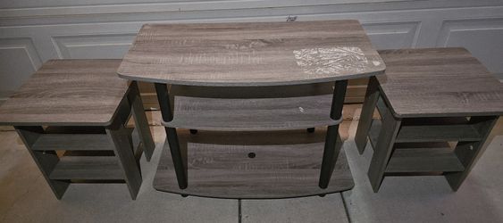 THREE-TIER WOODEN TV STAND & TWO SIDE TABLES $15Corona, CA