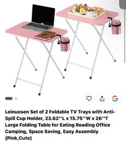 Leinuosen Set of 2 Foldable TV Trays with Anti-Spill Cup Holder, 23.62''L x 15.75''W x 26''T Large Folding Table for Eating Reading Office Camping, Sp$45Sacramento, CA