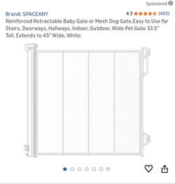 Reinforced Retractable Baby Gate or Mesh Dog Gate,Easy to Use for Stairs, Doorways, Hallways, Indoor, Outdoor, Wide Pet Gate 33.5" Tall, Extends to 45$20Sacramento, CA