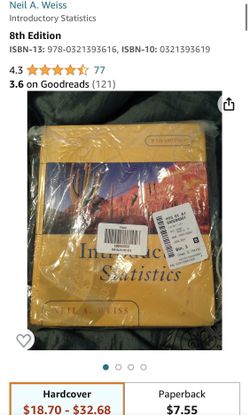 Introductory Statistics Neil A. Weiss 8th Edition $15Gilbert, AZ