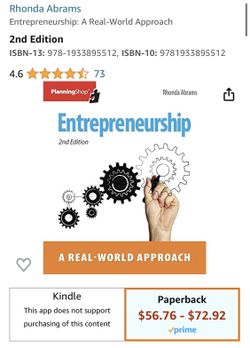 Rhonda Abrams Entrepreneurship: A Real-World Approach 2nd Edition$50Gilbert, AZ