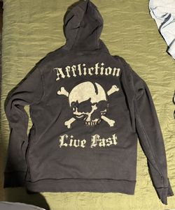 AFFLICTION Black Full Zip Hoodie Leather patch Skull & Crossbones XL Live Fast$230San Bernardino, CA