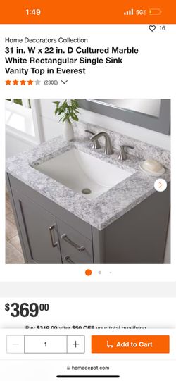 WHome Decorators Collection 31 in. W x 22 in. D Cultured Marble White Rectangular Single Sink Vanity$200San Jose, CA