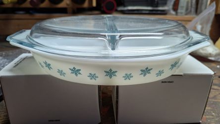 Pyrex Snowflake Divided Casserole Dish Milk Glass 1.5 Quart $30Tacoma, WA