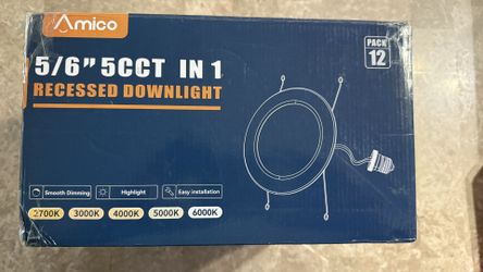 Amico 5/6 Inch 5CCT LED Recessed Lighting 12 Pack, 1050LM Flat Can Lights, Dimmable, IC Rated, 12W Eqv 110W, 2700K/3000K/4000K/5000K/6000K $60Boynton Beach, FL
