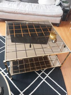 Stunning Large Oversized 2 Tier Tiered Coffee End Table W/Inlay Checkered Brass Diamond Patterns w/Shelves$100Monterey Park, CA