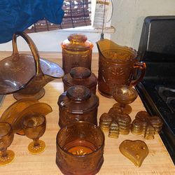 Beautiful 58 Pieces Rare Perfect Large Collection Of Vintage Indiana Tiara Amber Glassware Set.$425Mobile, AL