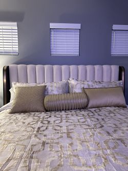 Living Spaces King Bed Beige With Wood And Gold Trim $700Riverside, CA