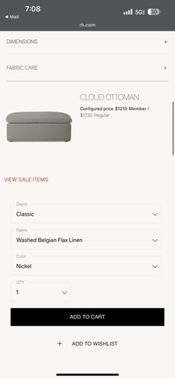 Restoration Hardware Cloud Ottoman $450Lake Stevens, WA