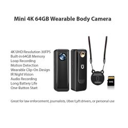 Mini 4K Body Camera – 64GB, Wearable Body Camera$62Miami, FL