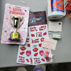 Valentine Items, Cup, 2 Tatoo Stickers, Sexy Dice, World's Greatest Lover Trophy $10Fresno, CA