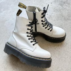 Dr Martens JADON White Leather Lace Up Side Zip Platform Boots $75Whittier, CA