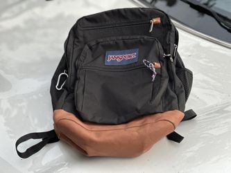 JANSPORT 5-POCKET BLACK BACKPACK COMPUTER SLEEVE LEATHER BASE BOTTLE HOLDER $35Coronado, CA