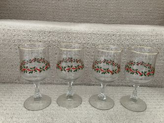 4-Holly-Berry Gold-rimmed Goblet Glasses$10Lyndhurst, OH
