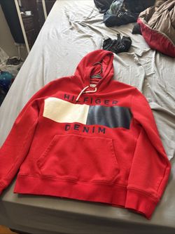 Tommy Hilfiger Mens Hoodie Large Red Flag 90s Streetwear Hooded Sweatshirt Logo$20Westland, MI