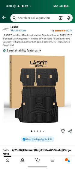 LASFIT Trunk Mat&Backrest Mat for Toyota 4Runner 2025-2026 5-Seater Gas Only(Not Fit Hybrid or 7-Seater), All Weather TPE Custom Fit Cargo Liner for 6$60Mesa, AZ