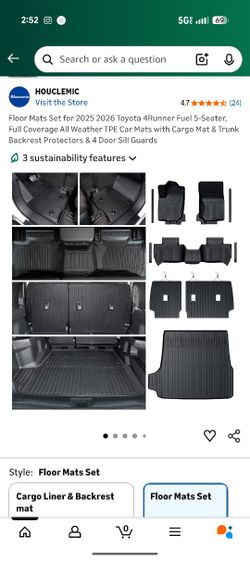 Floor Mats Set for 2025 2026 Toyota 4Runner Fuel 5-Seater, Full Coverage All Weather TPE Car Mats with Cargo Mat & Trunk Backrest Protectors & 4 Door $50Mesa, AZ