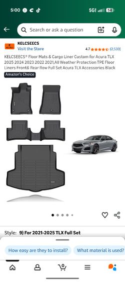 KELCSEECSĀ® Floor Mats & Cargo Liner Custom for Acura TLX 2025 2024 2023 2022 2021,All Weather Protection TPE Floor Liners Front& Rear Row Full Set $60Mesa, AZ