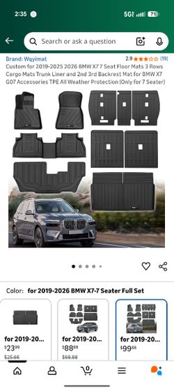 Custom for 2019-2025 2026 BMW X7 7 Seat Floor Mats 3 Rows Cargo Mats Trunk Liner and 2nd 3rd Backrest Mat for BMW X7 G07 Accessories TPE All Weather P$60Mesa, AZ