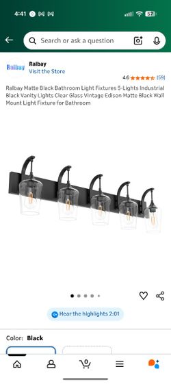 Ralbay Matte Black Bathroom Light Fixtures 5-Lights Industrial Black Vanity Lights Clear Glass Vintage Edison Matte Black Wall Mount Light Fixture$80Mesa, AZ