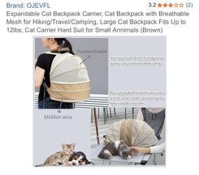 Brand: OJEVFL Expandable Cat Backpack Carrier, Cat Backpack with Breathable Mesh for Hiking/Travel/Camping, Large Cat Backp$20Artesia, CA