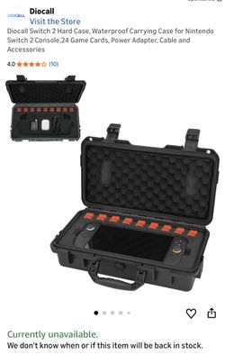 Diocall Switch 2 Hard Case, Waterproof Carrying Case for Nintendo Switch 2 Console,24 Game Cards, Power Adapter, Cable and Accessories$25Norwalk, CA