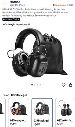 PROHEAR 037 Gel Ear Pads Bluetooth 6.0 Hearing Protection Headphones, 1500mAh Rechargeable Battery for 120H Playtime Perfect for Mowing Workshops Snow$40Norwalk, CA