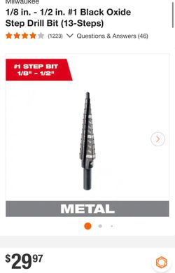 Milwaukee 1/8 in. - 1/2 in. #1 Black Oxide Step Drill Bit$20City Of Industry, CA