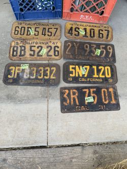 VINTAGE CALIFORNIA LICENSE PLATES $25 each In Madera ca Possible trade for vintage signs or vintage metal toys CHECK MY OTHER LISTINGS FOR MORE GRE$25Madera, CA