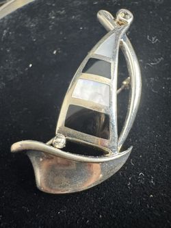 Sterling Silver Sailboat Brooch w/ Mother-of-Pearl & Onyx Inlay$40Carlsbad, CA