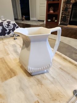 Vintage Wm Adams & Sons England White Ironstone Pitcher Empress Pattern -6” H$27Galivants Fry, SC
