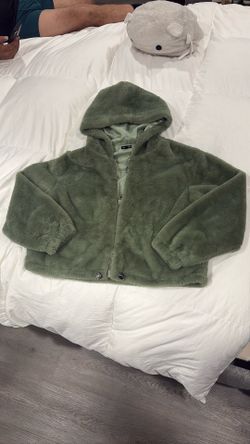 Green Faux Fur Soft Hoodie Short Waisted Free Haven Women’s Jacket Size M$25Norco, CA