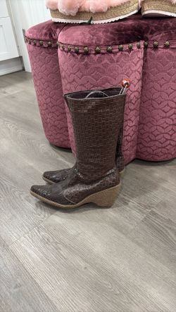 Women’s Brown, Leather Braided Boots, Pointed Toe, Snake Print Leather Lower Portion. Size 8, 8.5$20Norco, CA