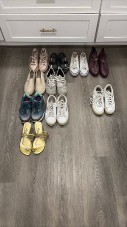 Shoes Top Row Size 8, Second Row Size 8.5, Third Row Size 9, And Gold Sandals Size 10, White Nikes Size 6.5 Y. Any $10. $10Norco, CA