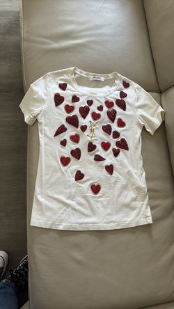 YSL Perez, White T-shirt Red sequined Heart embellishment and an embroidered YSL logo. size S. May fit like a medium.$25Norco, CA